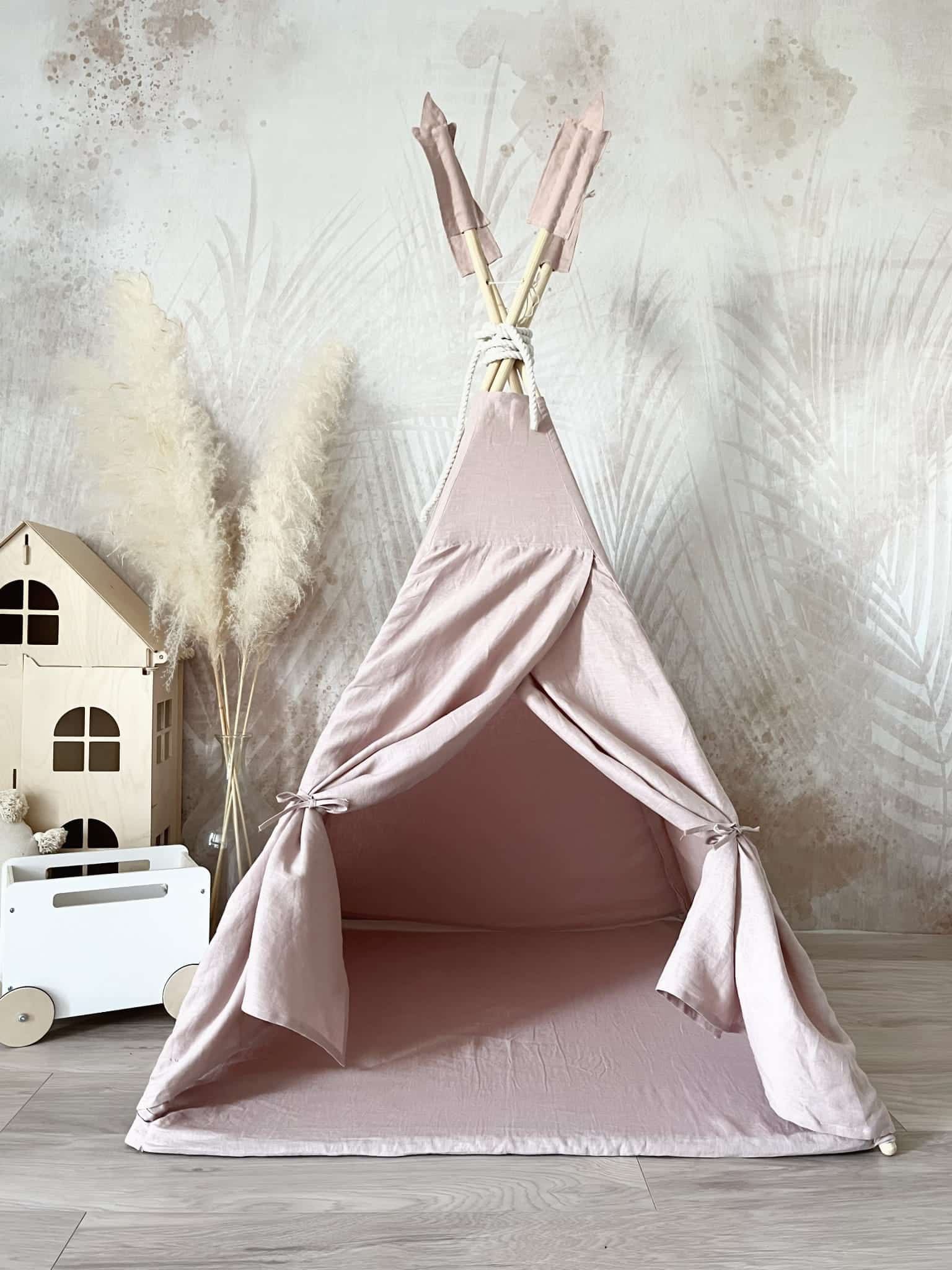 Tiipii-teltta + matto pellavaa / Puuteri roosa, Monio