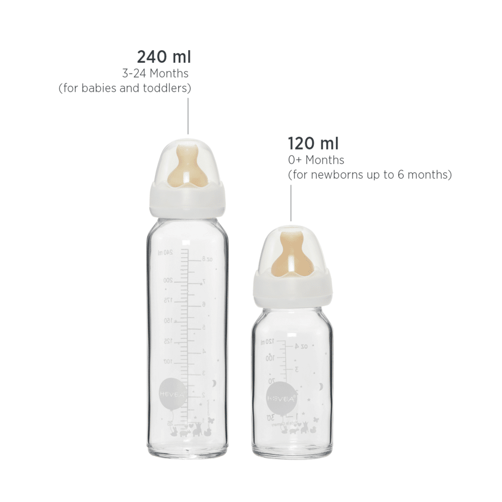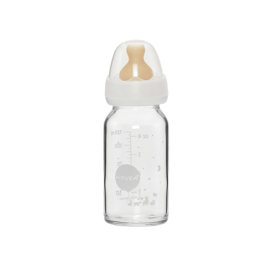 HEVEA’s glass feeding bottle (120ml) is made of heat-resistant and high-quality tempered glass.