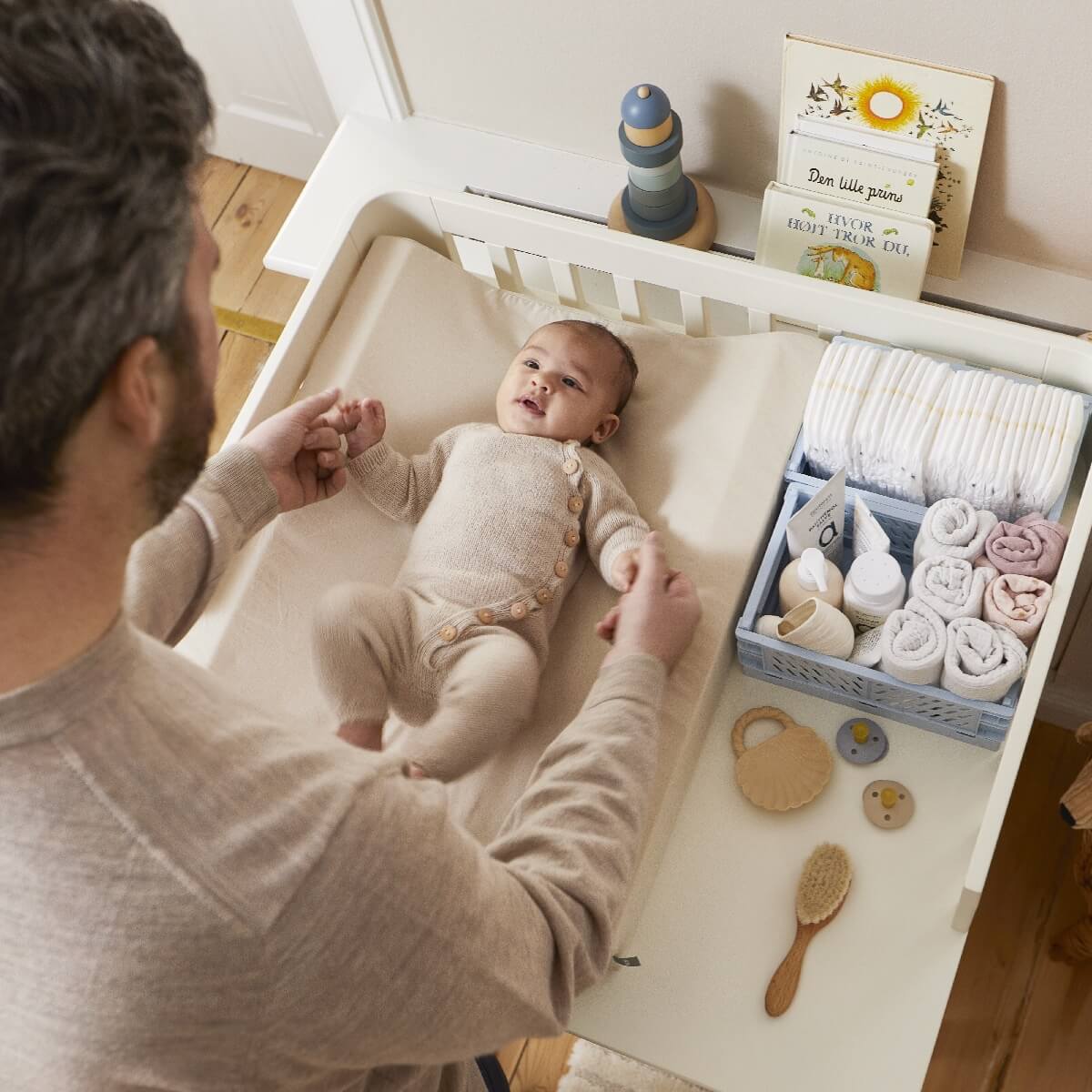 Kun vaipanvaihtopäivät ovat ohi, muuntuu hoitopöytä mukana tulevan vaihdettavan tason avulla tavalliseksi lipastoksi, mikä sopii loistavasti myös muihin kodin huoneisiin.