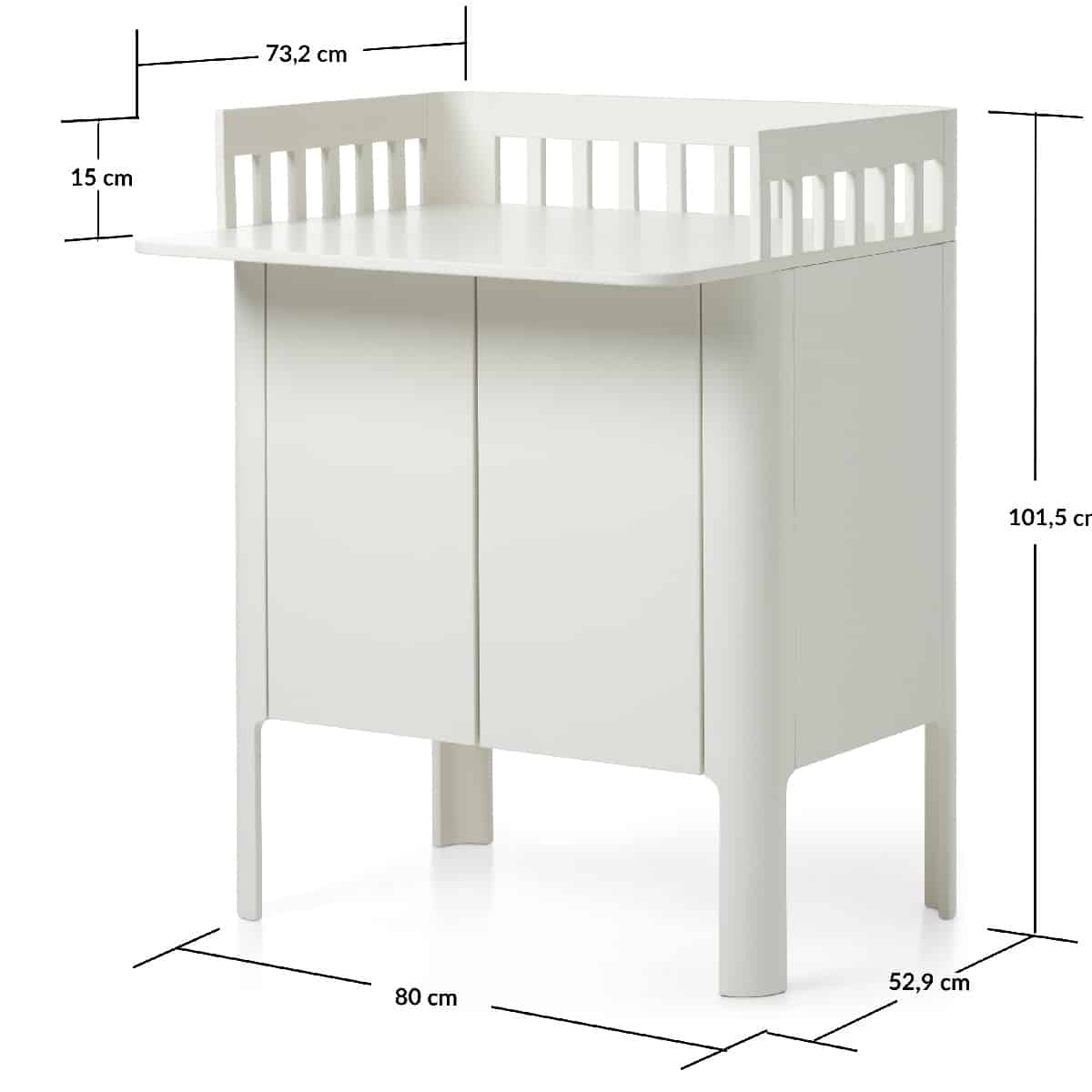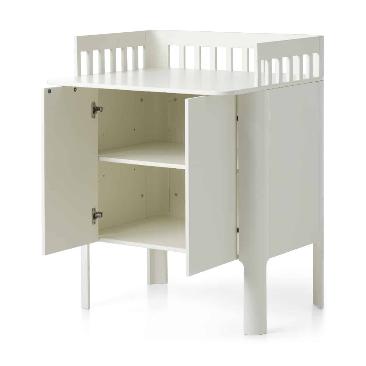 Hoitopöytä mahdollistaa mutkattomat vaipanvaihtohetket kotona. Suuren hoitopinnan ansiosta voit helposti pitää sekä lapsesi hoitoalustan, että välttämättömät tavarat, kuten vaipat, harsot ja vaatteet, helposti ulottuvillasi. Heti hoitoalustan alta löydät tilavan kaapin korkeussäädettävällä hyllyllä ja kätevillä, paina-avaa ovilla.