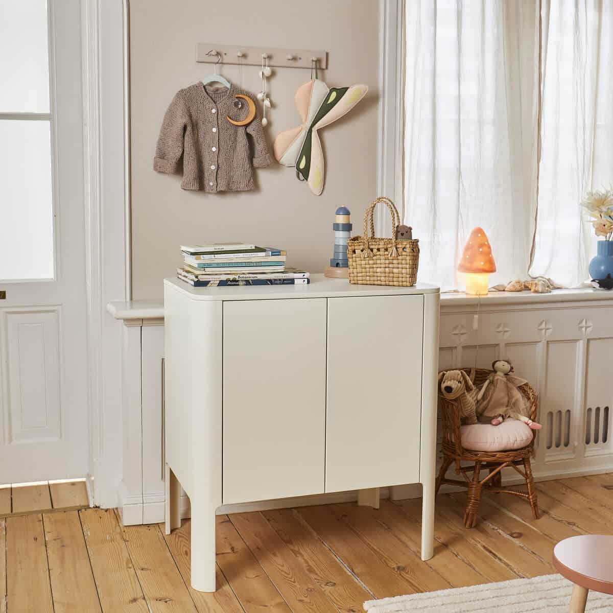 Upea hoitopöytä edustaa tanskalaista muotoilua ja muuntuu myös tavalliseksi lipastoksiksi. Hoitopöydän kauniit pyöreät reunat tuovat persoonallisuutta sisustukseen, ollen samalla kokonaisuudeltaan hillityn tyylikäs