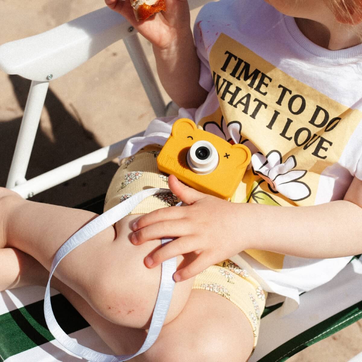 Hoppstar-kamera ei ole pelkästään söpö, se on myös huippuhauska ja helppokäyttöinen! Suurten painikkeiden ansiosta pikkukädet pääsevät heti tutkimaan maailmaa linssin läpi. Lisäksi vaihdettava silikonikotelo suojaa kolhuilta ja varmistaa, että kamera pysyy tukevasti käsissä – valmiina tallentamaan jokaisen seikkailun.