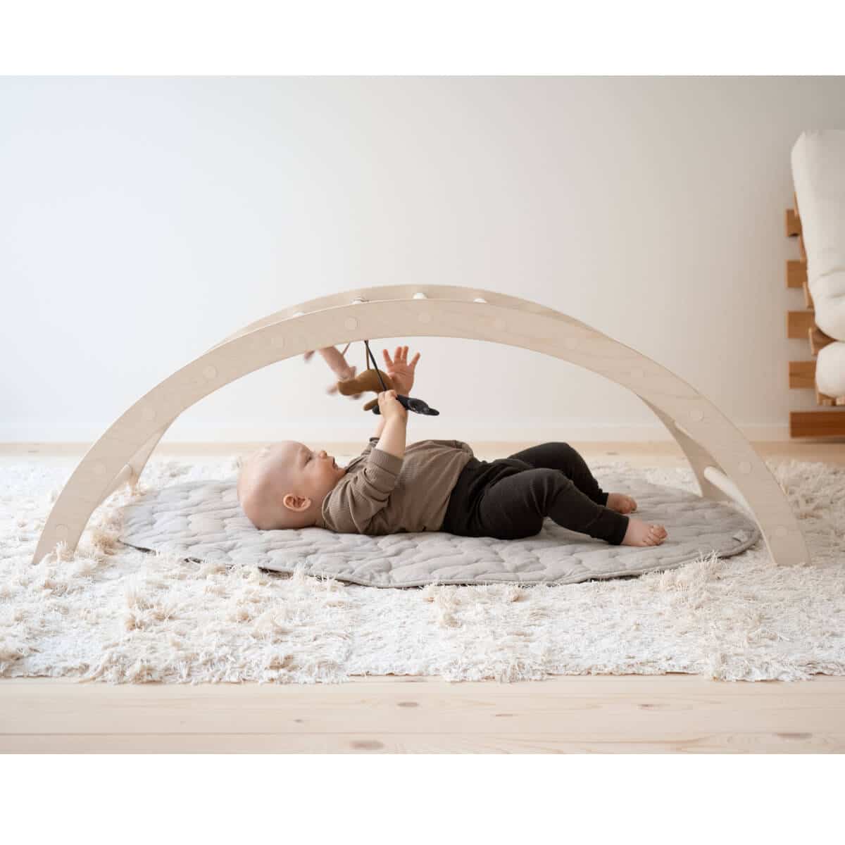 Materiaali: Lepokiikku ja kiilat: koivuvaneri (kestävästi tuotettu koivuvaneri EU:n alueella / Pehmuste: Kangas: 100% kierrätetty (87% kierrätetty puuvilla, 13% kierrätetty polyesteri), täyte: 60% kierrätetty polyesteri, 40% vaahtomuovirouhe (voi sisältää yksittäisiä untuvia)