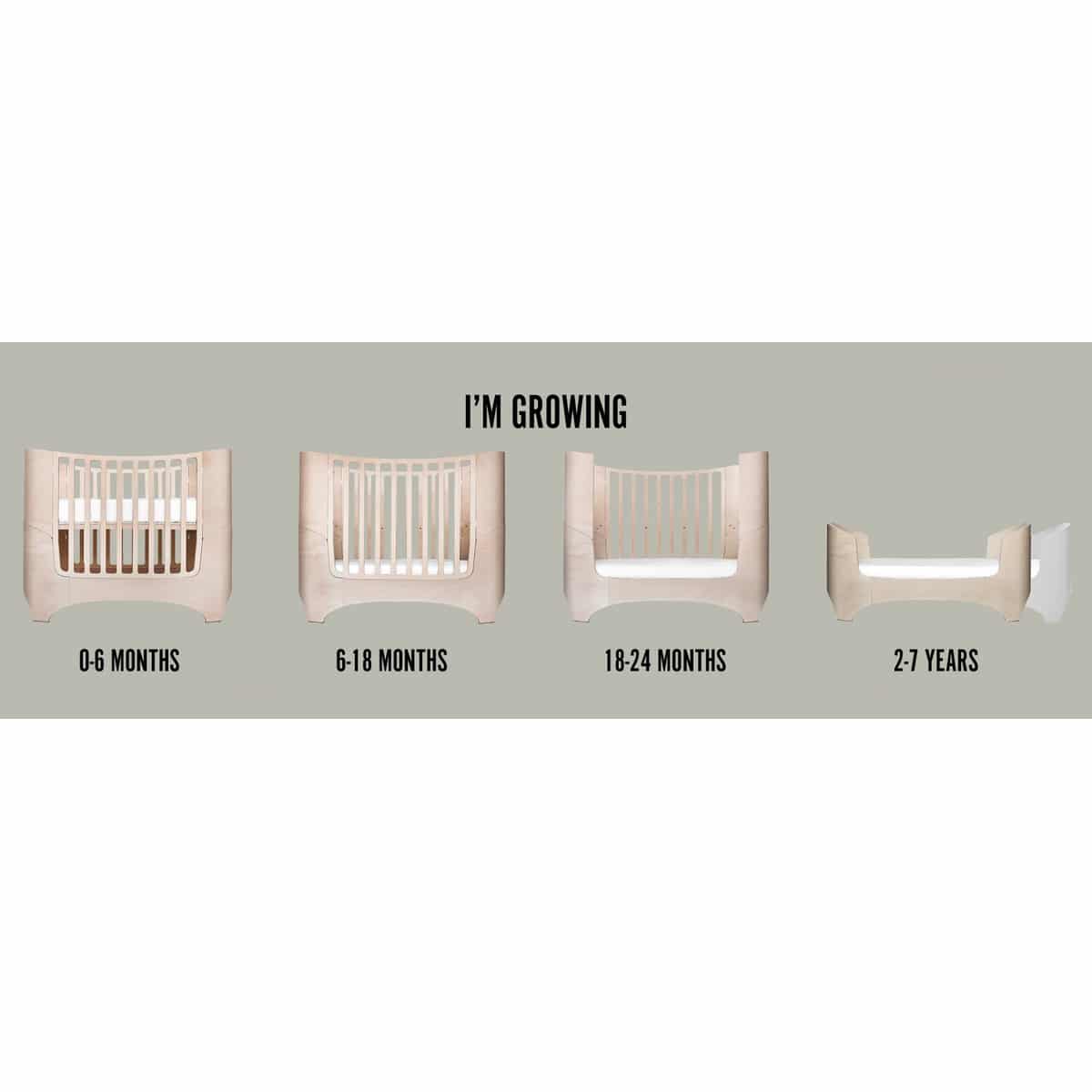 Aloita käyttämällä sänkyä korotetulla pohjalla ja korkeilla päädyillä. Kun lapsesi kasvaa ja oppii seisomaan, voit laskea pohjaa. Kun lapsi on valmis kiipeämään itse sänkyyn ja sieltä pois, voit poistaa yhden laidan ja myöhemmin toisen. Sängyn voi nopeasti ja helposti muuntaa kauniiksi juniorsängyksi lisäämällä erikseen saatavan juniorisettipaketin. Näillä erilaisilla asetuksilla sänky on pitkäikäinen. Vauvansänkyä, jossa on avoin sivu, ei saa käyttää vanhemman sängyn vieressä sivusänkynä. Sänky ei ole hyväksytty sivusängyksi.