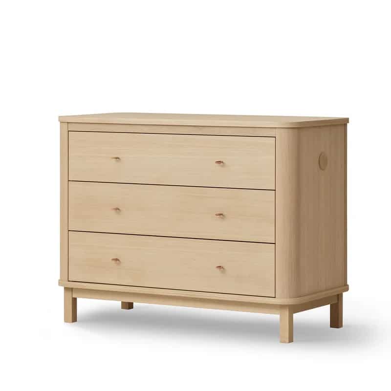 Tamminen lipasto huokuu lämpöä ja luonnollista eleganssia, tehden siitä tyylikkään mutta toimivan lisän vauvan huoneeseen. Siinä on kolme tilavaa laatikkoa, jotka on kukin jaettu kahteen osastoon, tarjoten runsaasti säilytystilaa vaatteille, vaipoille ja vuodevaatteille varmistaen, että kaikki on helposti käden ulottuvilla ilman, että huomiosi menee pois vauvasta.