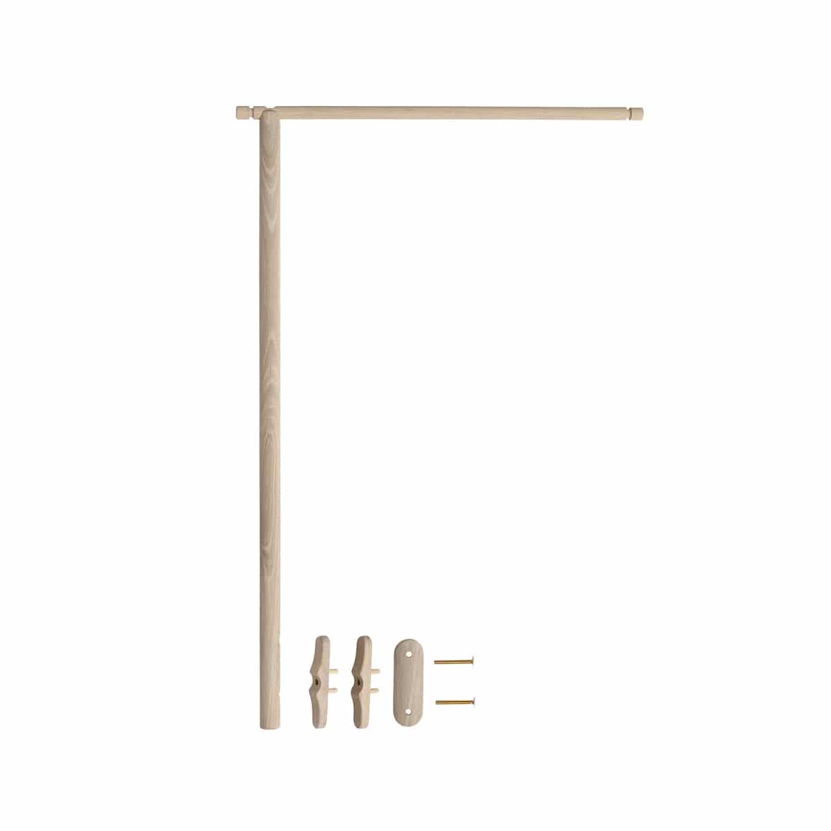 Sängynkatoksen ja mobilen pidike on valmistettu valkoöljytystä massiivitammesta, joka korostaa luonnollista ja pohjoismaista ilmettä.