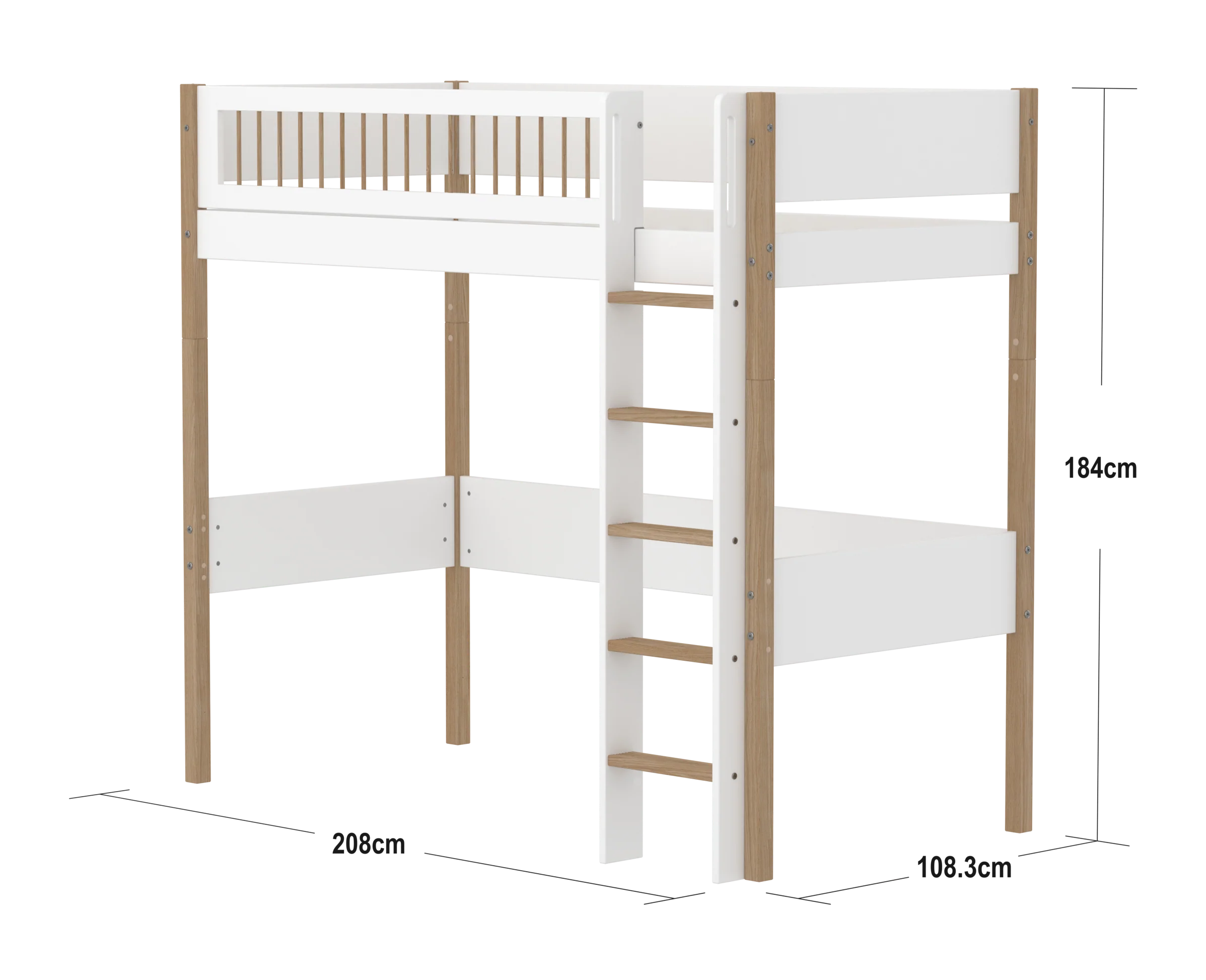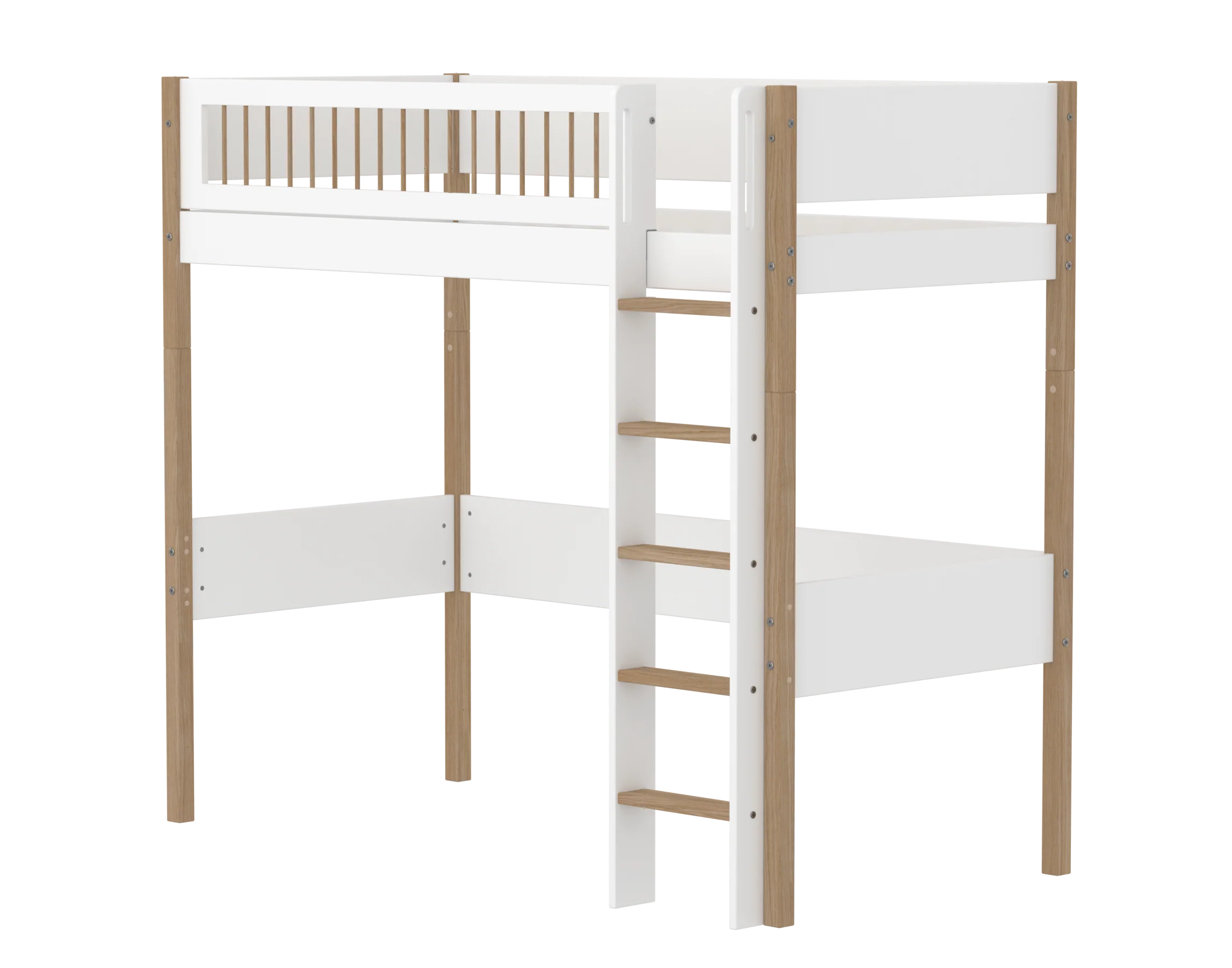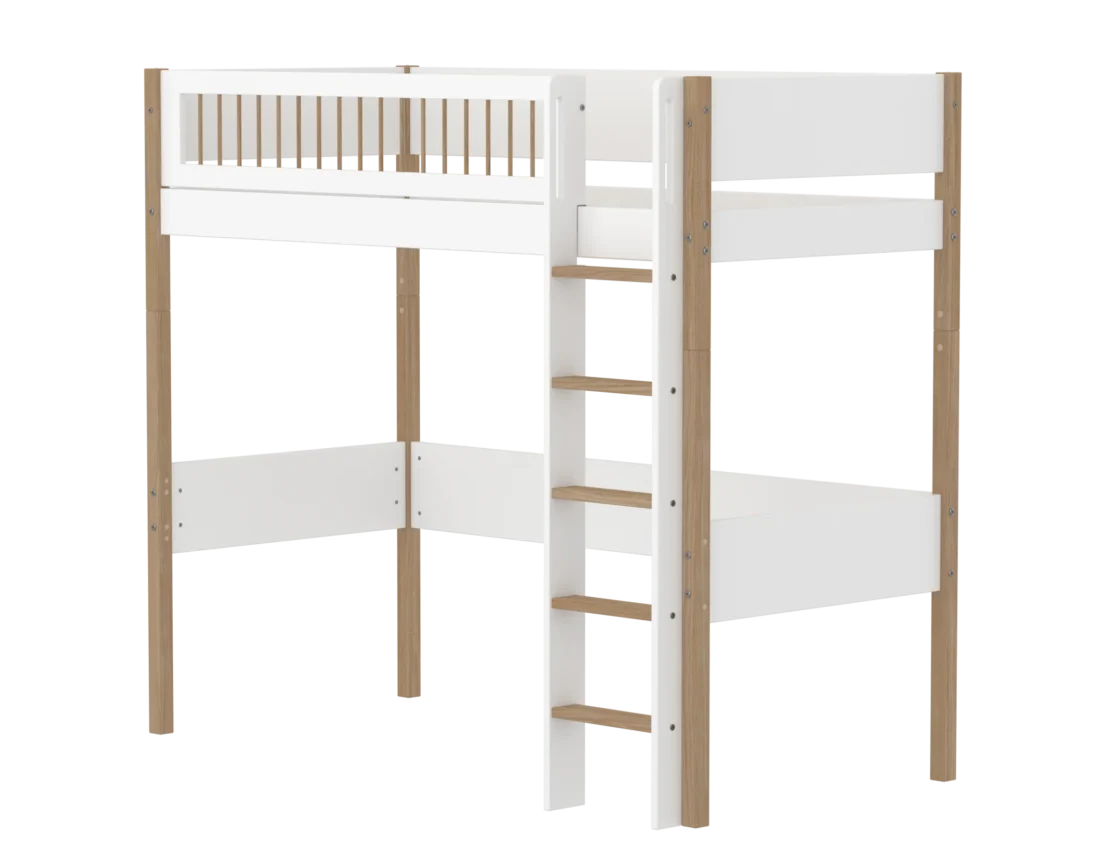 NOR-korkea parvisänky on täydellinen ratkaisu lapsille, jotka tarvitsevat tilaa tai säilytystilaa sängyn alla. Sänky kannustaa myös viihtyisiin hetkiin sängyn alla. Korkea sänky on modulaarinen ja se voidaan muuttaa yhden hengen sängyksi tai keskikorkeaksi sängyksi vaihtamalla jalat ja tikkaat. Sängyssä on suorat tikkaat, joissa on liukumattomat askelmat ja integroidut kahvat. Tikkaat voidaan sijoittaa sängyn molempiin päihin.