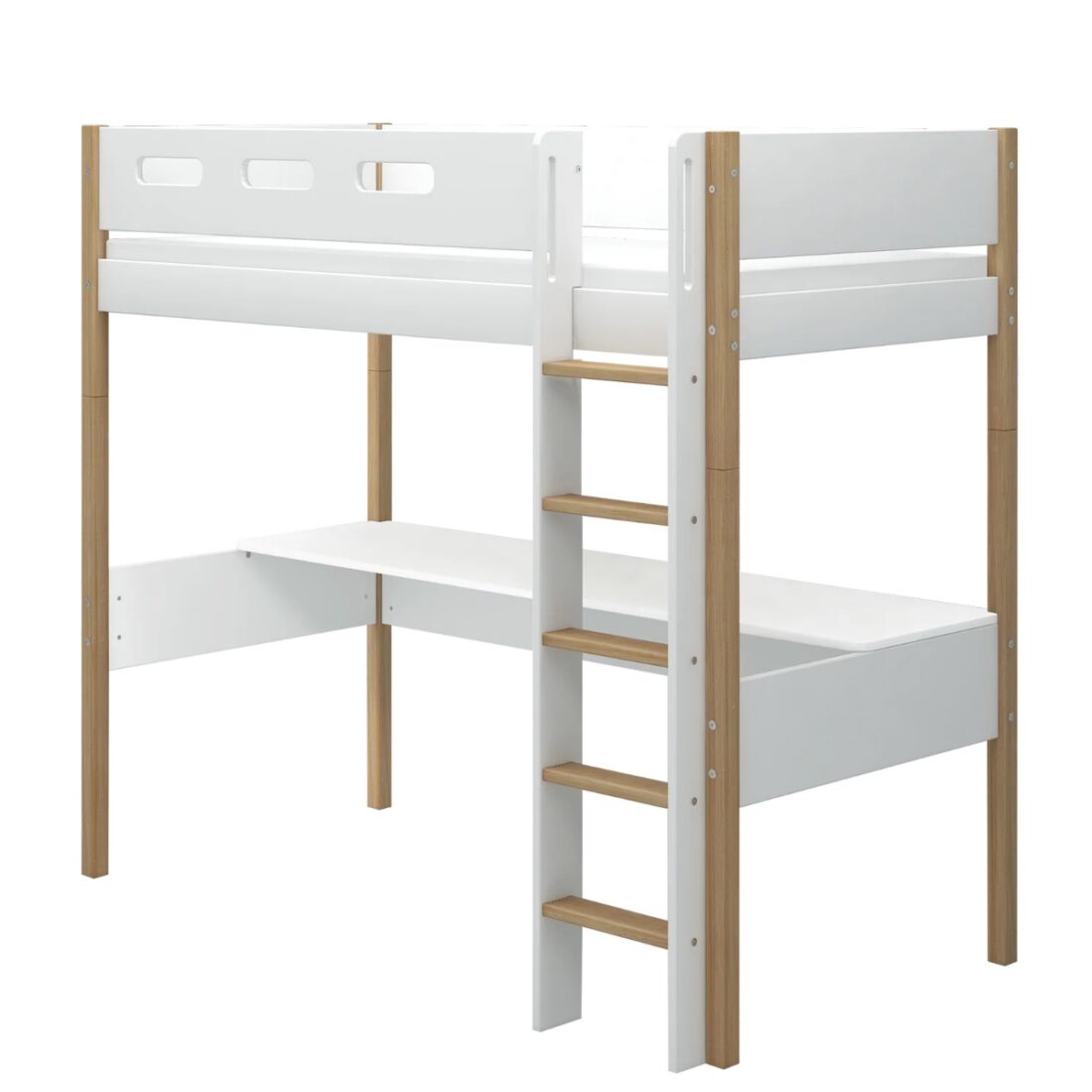 Flexa parvisänky suorilla tikkailla ja työpöydällä on täydellinen ratkaisu lapsille, jotka tarvitsevat opiskelutilaa ja säilytystilaa sängyn alle. Korkea sänky on modulaarinen ja se voidaan muuttaa yhden hengen sängyksi tai keskikorkeaksi sängyksi vaihtamalla jalat ja tikkaat. Sängyssä on suorat tikkaat ja integroidut kahvat. Tikapuut voidaan sijoittaa sängyn molempiin päihin. Sänky on valmistettu massiivimännystä.