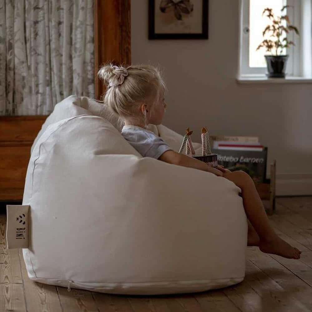 Bini on istumiseen, löhöilyyn ja leikkimiseen suunniteltu mukava ja tyylikäs säkkituoli. Säkkituolilla luot erityisen paikan lastenhuoneeseen, nuoren huoneeseen tai vaikkapa olohuoneeseen.