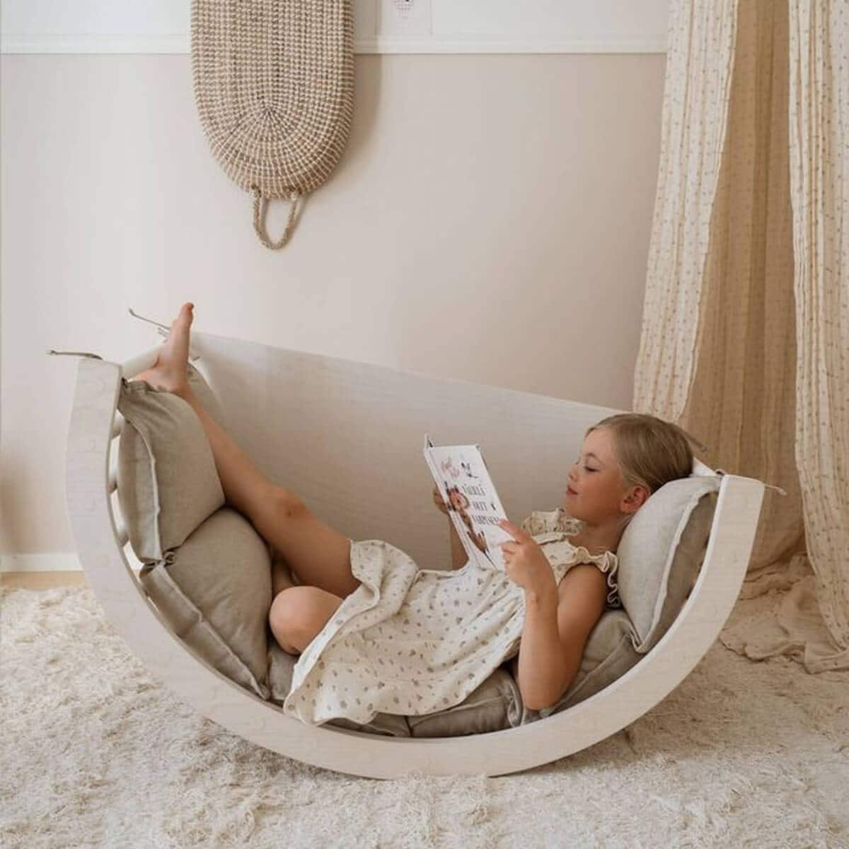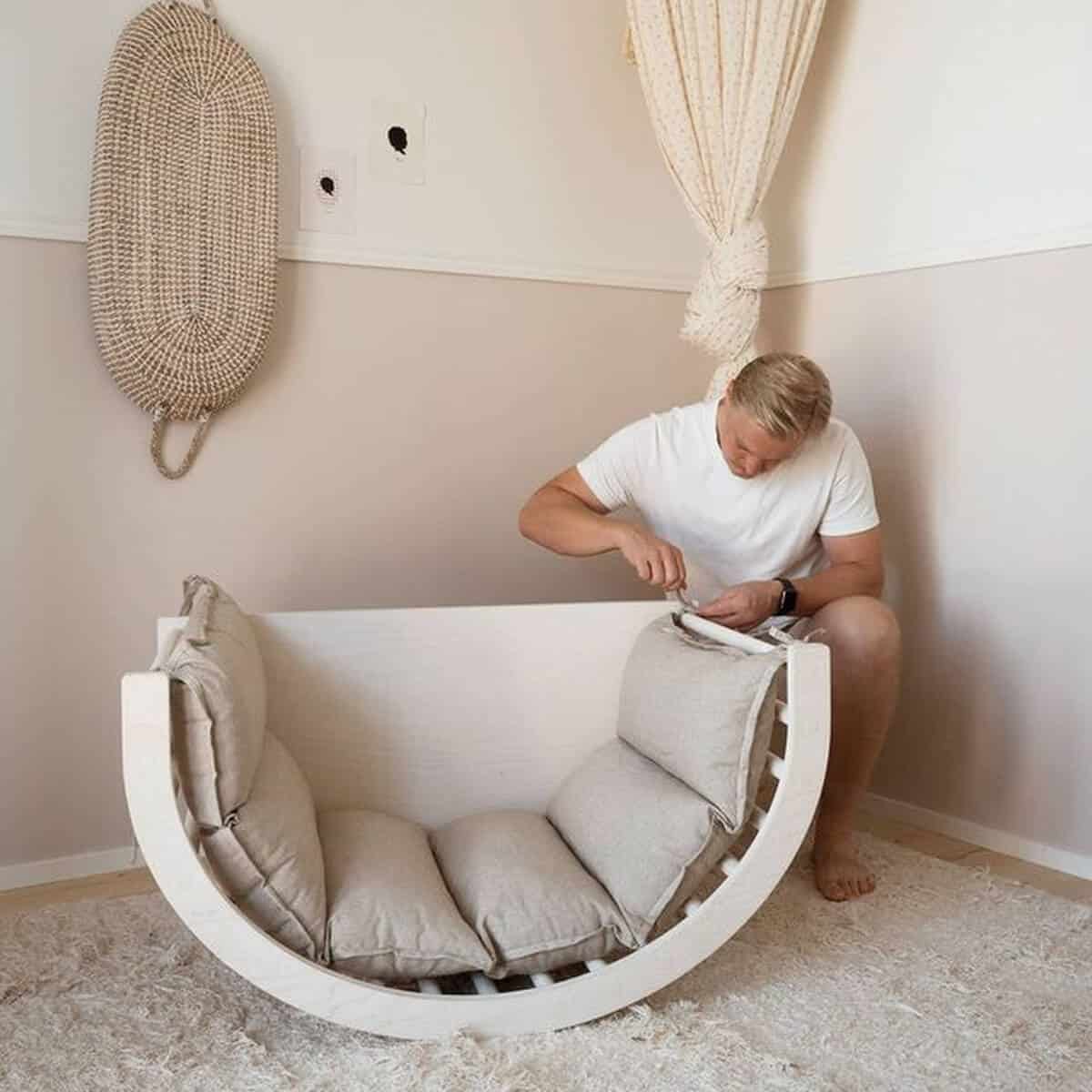 Kaura-pehmuste on suunniteltu käytettäväksi yhdessä Fitwood Luoto kiipeilykaaren kanssa, kun kaari käännetään ylösalaisin ja sitä käytetään kiipeilyn sijaan kiikkuna. Pehmuste on pehmeä ja pöyheä, ja kiikkuminen sen kanssa on mukava, rauhoittava kokemus. Pehmusteen kaunis hiekanvärinen päällinen on valmistettu 100% kierrätetyistä materiaaleistta.