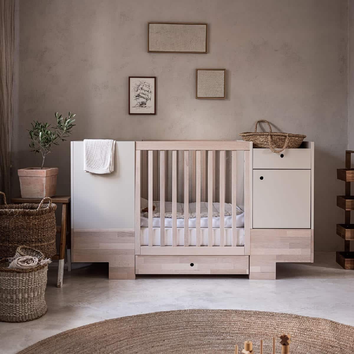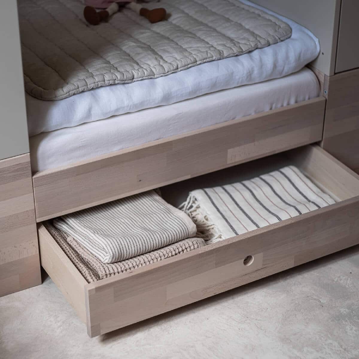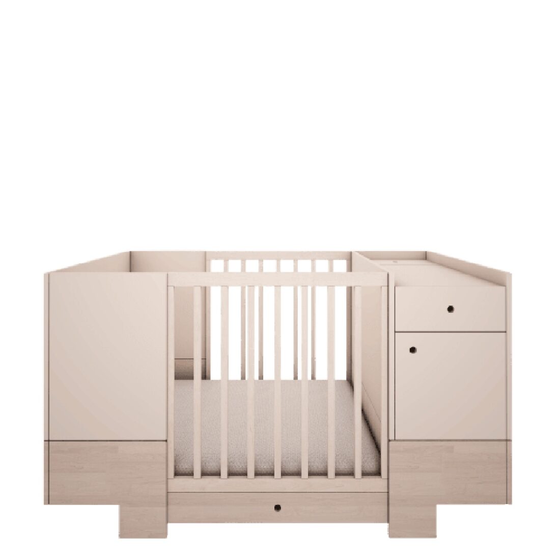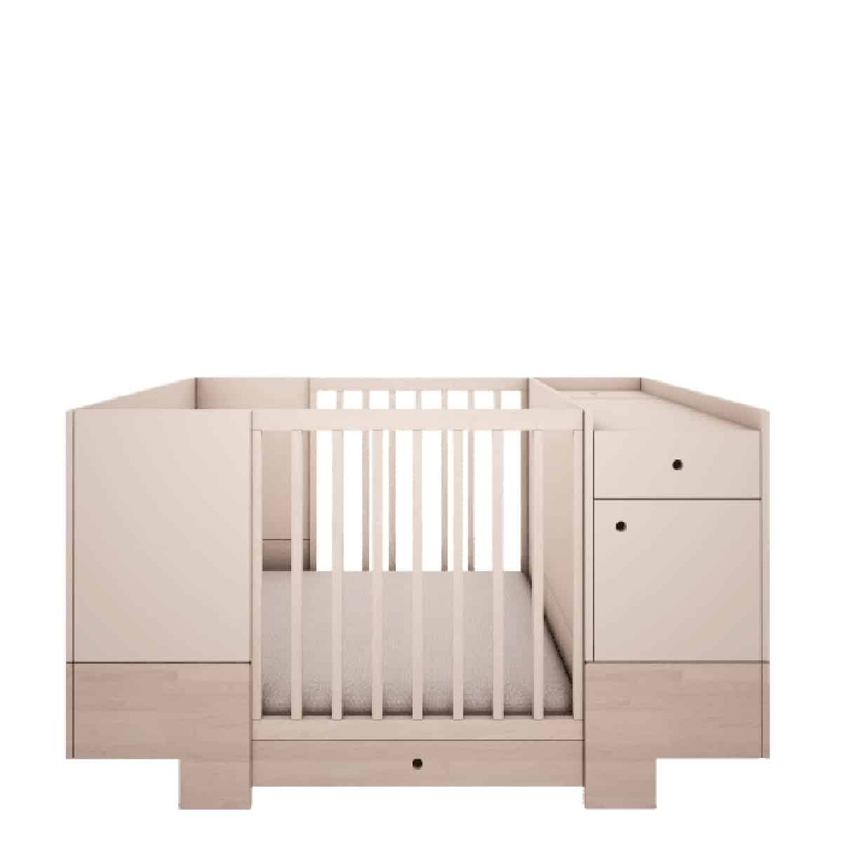 Seikkailu Smart-sängyllä alkaa 80x120cm-kokoisesta sängystä. Käden ulottuvilla oleva kaappi hoitopöydällä, hyllyillä ja laatikolla mahdollistaa vauvan hoidon erittäin mukavasti. 80x120cm sängyssä 3 patjan pohjan säätötasoa: alin asento (etäisyys lattiasta) 21,5 cm; keskiasento: 45 cm; korkein sijainti: 63 cm. Sängyn irrotettavat laidat mahdollistavat, että isommat lapset voivat nousta sängystä itse, mikä varmistaa turvallisen sopeutumisen seuraavaan vaiheeseen eli nukkumiseen ilman kaidetta. Kun lapsi on valmis, voit purkaa seuraavat elementit saadaksesi työpöydän, vapaasti seisovan kaapin, lelusäiliön ja 80x160cm kokoisen sängyn!