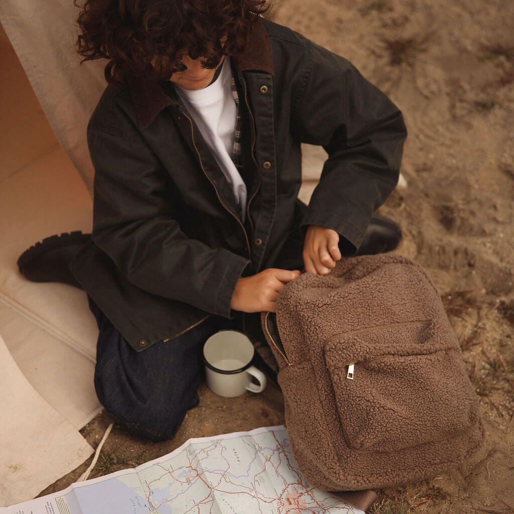 Studio Noos-merkin supersuosittu teddykankainen reppu isommassa Midi-koossa. Reppu on suunniteltu kevyeksi kantaa, pitkäikäiseksi ja helposti säädettäväksi lapsen koon mukaan, jotta sitä voi käyttää mahdollisimman pitkän ajan.