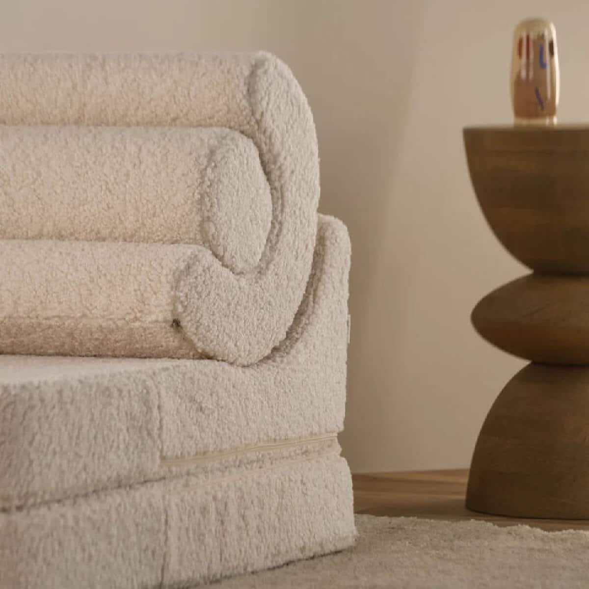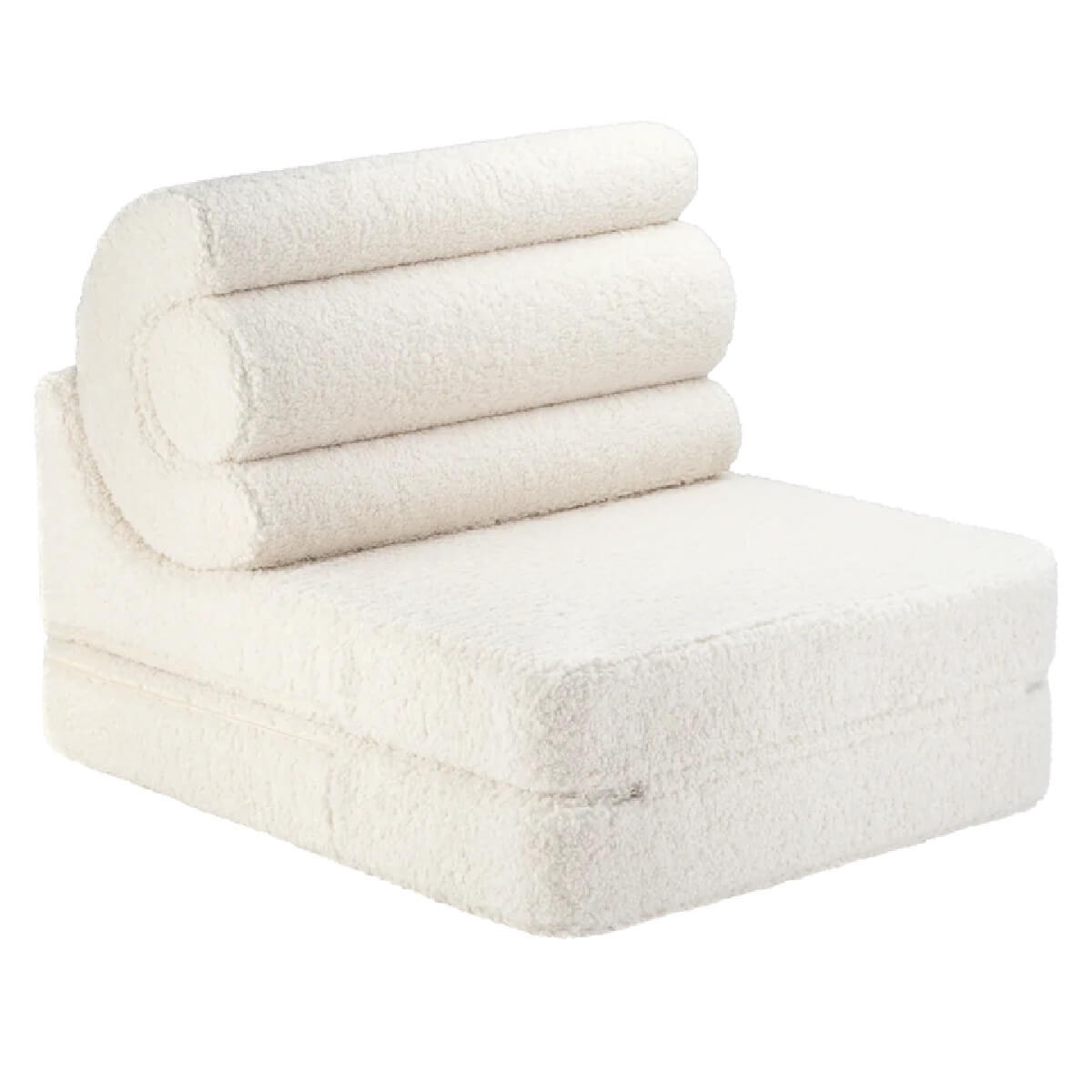 Kätevä taitettava tuoli toimii mukavana lastenhuoneen tuolina/sohvana ja muuntuu patjaksi tai esimerkiksi pehmusteeksi leikkien alle. Tuoli näyttää upealta myös muissa kodin tiloissa kuten olohuoneessa ja tuolin selkänojana toimivat hauskasti muotoillut tyynyt ovat upea ja persoonallinen yksityiskohta sisustukseen. Taittotuolin päällinen on pehmeää teddy-kangasta. Yhdistä säkkituolin kanssa saman sarjan muita tuotteita, kuten kauniit koristetyynyt!