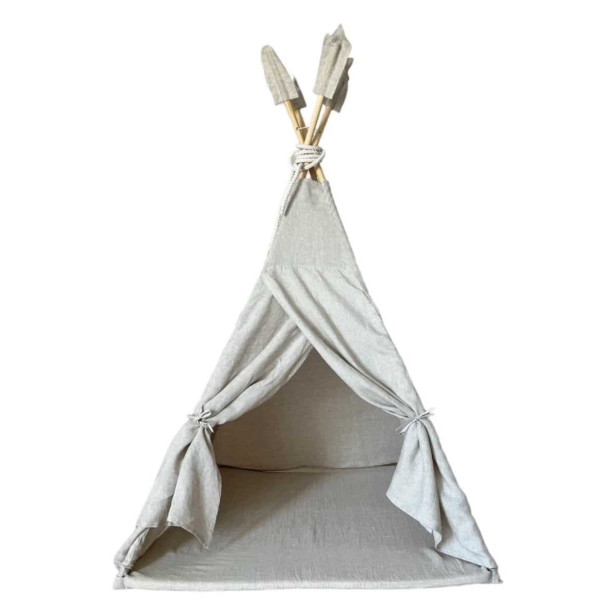 Upea tiipii teltta kauniista pellavasta. Tiipii-teltta takaa lapselle hauskat mielikuvitusleikit kerrasta toiseen. Tiipii teltan pohjana on pehmeä matto, joten teltan suojaan on myös ihana käpertyä rahoittumaan lepäilemään tai lukemaan esimerkiksi lempi kirjaa. Tiipii teltta on valmistettu sertifioiduista, huippulaatuisista materiaaleista. Tuote on valmistettu huolellisesti jokaista yksityiskohtaa myöten, lasten turvallisuus mielessä pitäen. Kaunis tiipii-teltta näyttää tyylikkäältä missä tahansa sisustuksessa!
