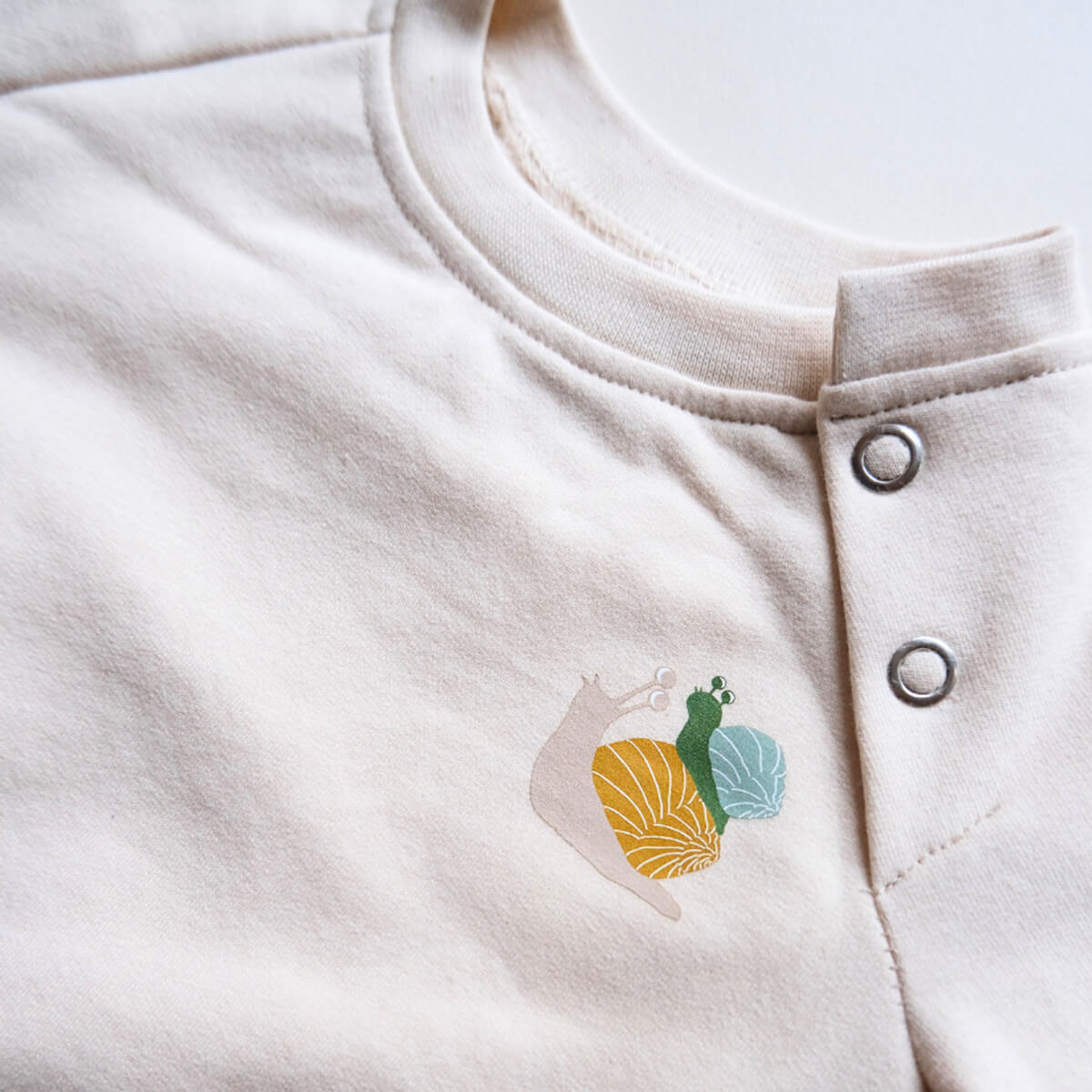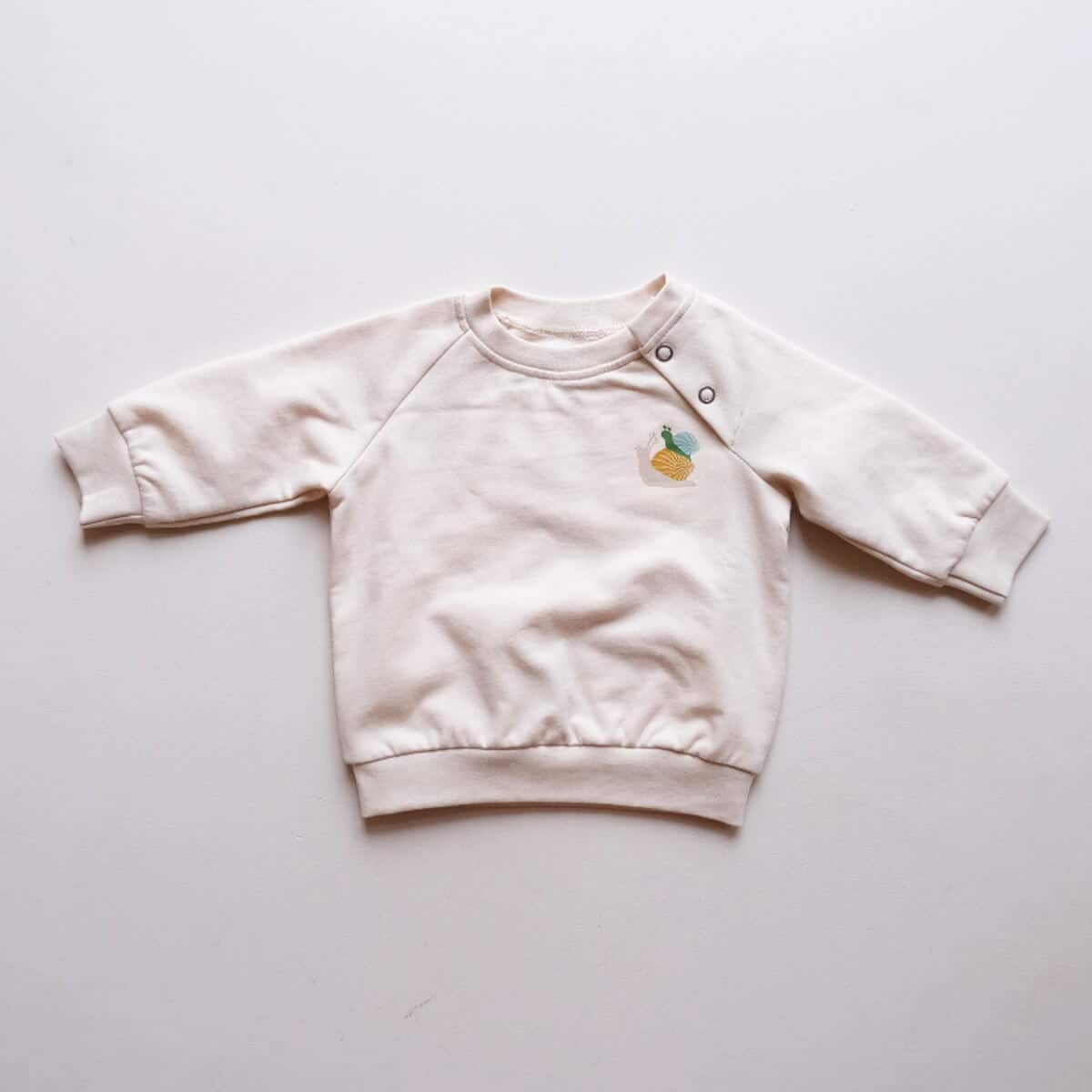 Vauvan collegepaita raglanhihoilla, valmistettu erittäin pehmeästä, värjäämättömästä, luonnonmukaisesta puuvillasta (GOTS-sertifioitu).